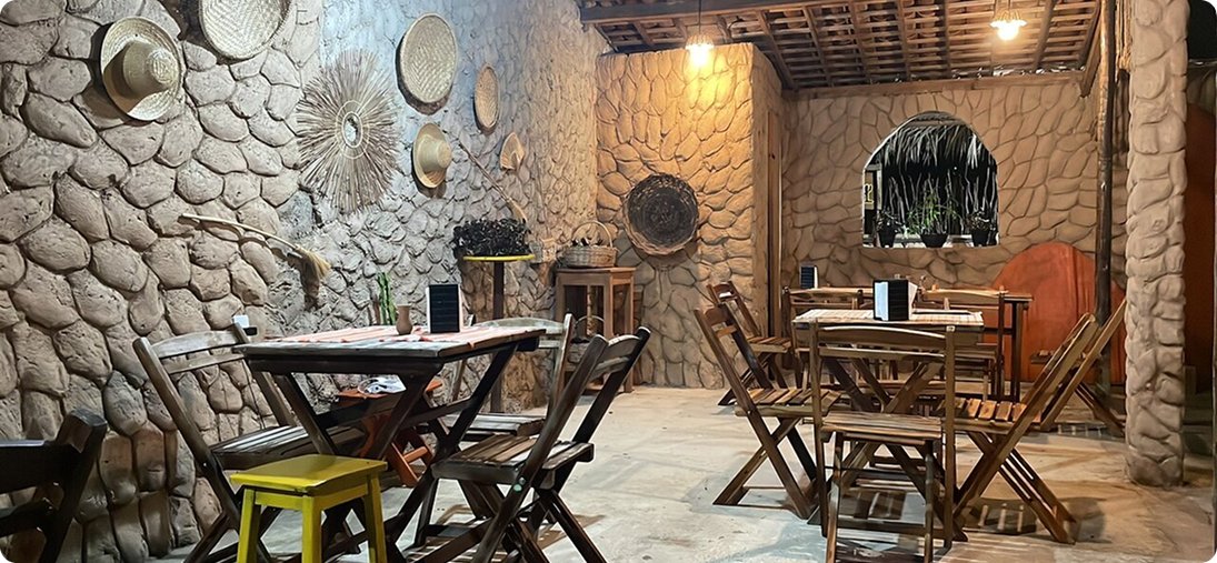 Com um ambiente simples e rústico, o restaurante valoriza a essência da cultura nordestina, oferecendo um clima tranquilo e familiar, ideal para quem quer relaxar à beira-mar. A proposta é proporcionar uma vivência mais intimista, longe do agito, onde o destaque está nos sabores e na hospitalidade.