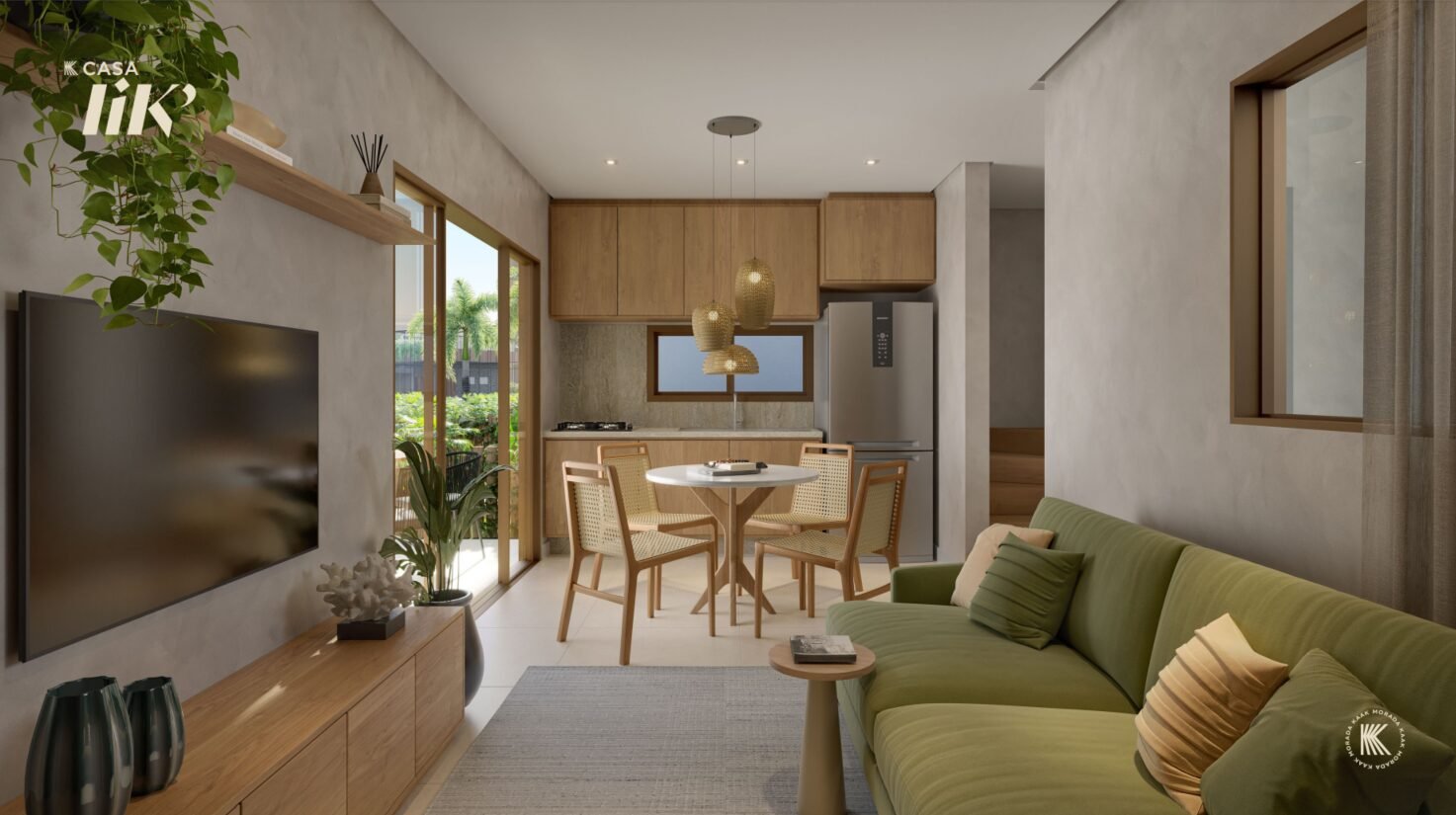 - Sala de estar, jantar e cozinha integradas